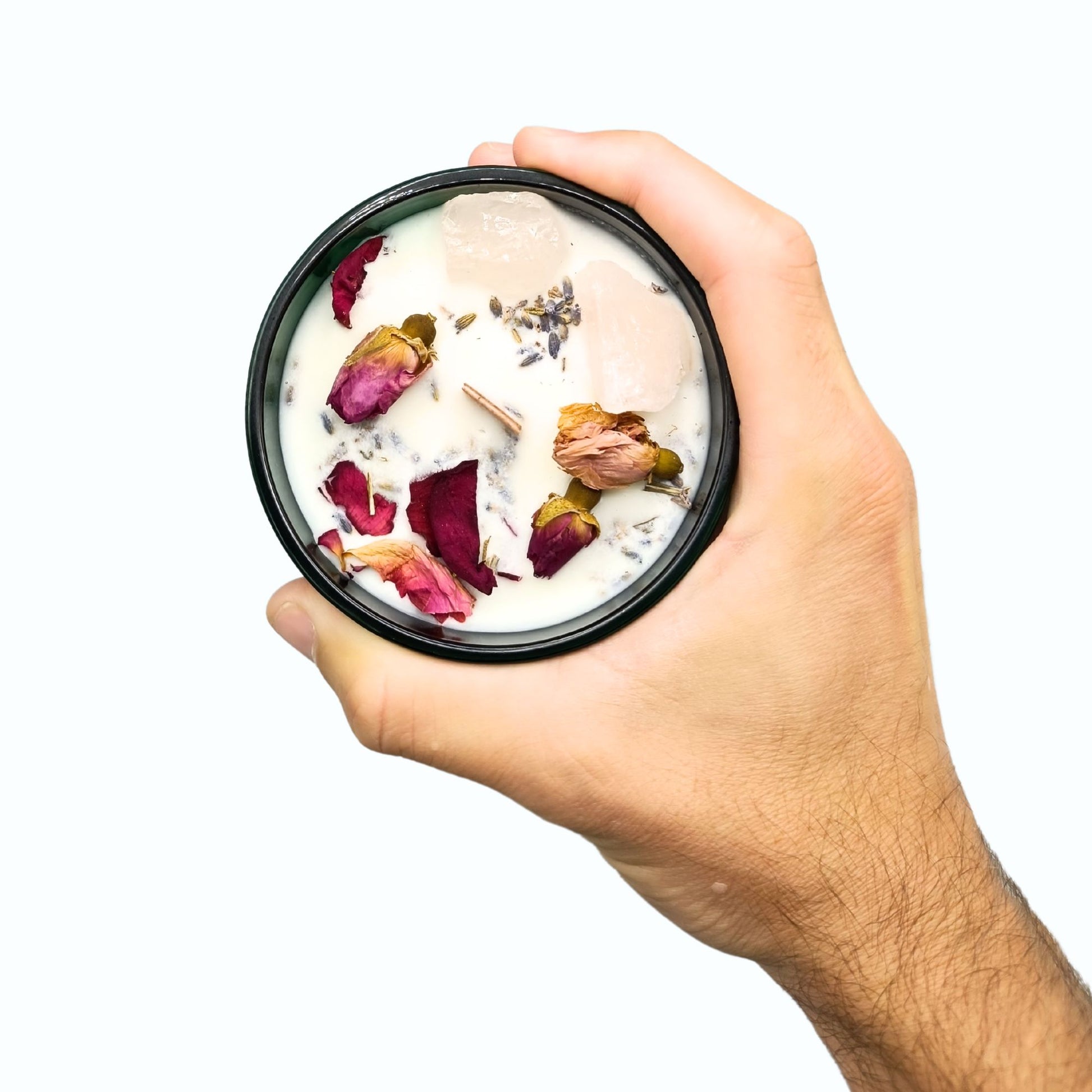 Matériaux / Ingrédients: Cire de soja, parfum, verre, pierres précieuses