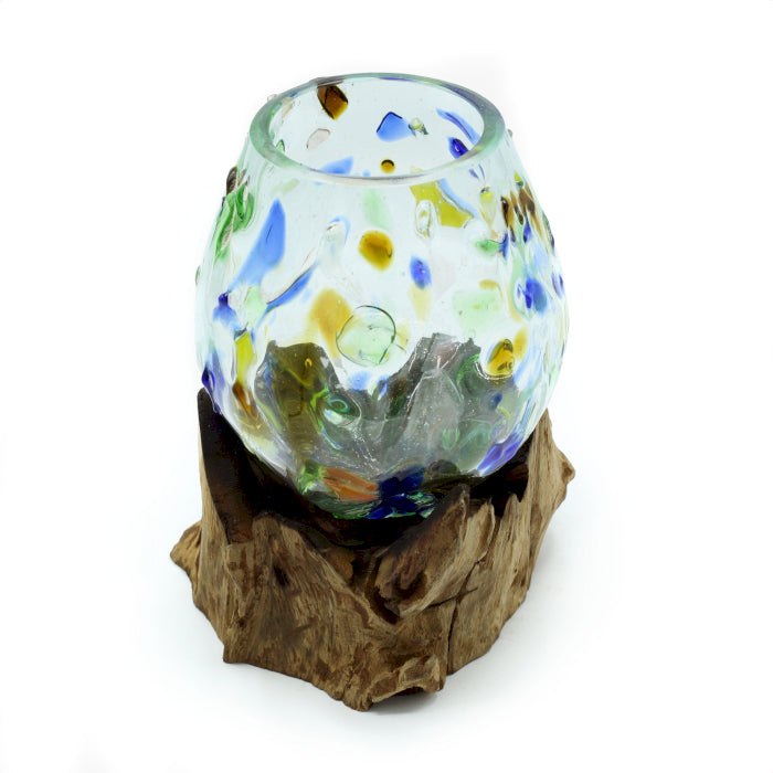 Verre coloré fusionné sur bois - Bol moyen